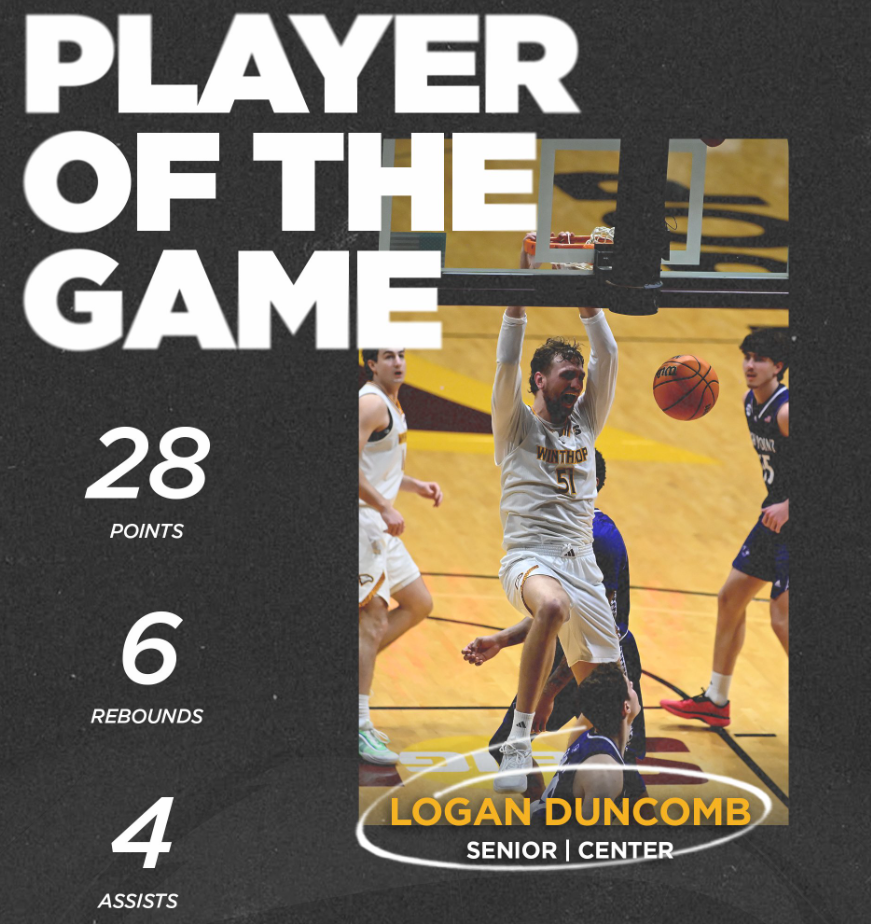 Big South play began with a loss to Longwood on the road, before finally the Eagles sorted out some rotation issues while also juggling a banged-up Daylen Berry, who missed the Charleston Southern win. One area that is clearly sorted out is the middle. Big man, Logan Duncomb, has been an absolute blessing to the University located in Rock Hill, South Carolina. Duncomb currently sits in line to be Big South Player of the Year, per KenPom. Duncomb became the ace in the hole in last week's big opportunity vs. High Point. He finished with 28 points, six boards, four assists, as the Eagles just continued feeding him the rock in the face of HPU's no drop/cover ball screens approach. It was rather effective as the Eagles walloped the mighty favorites from the North, 92-75.