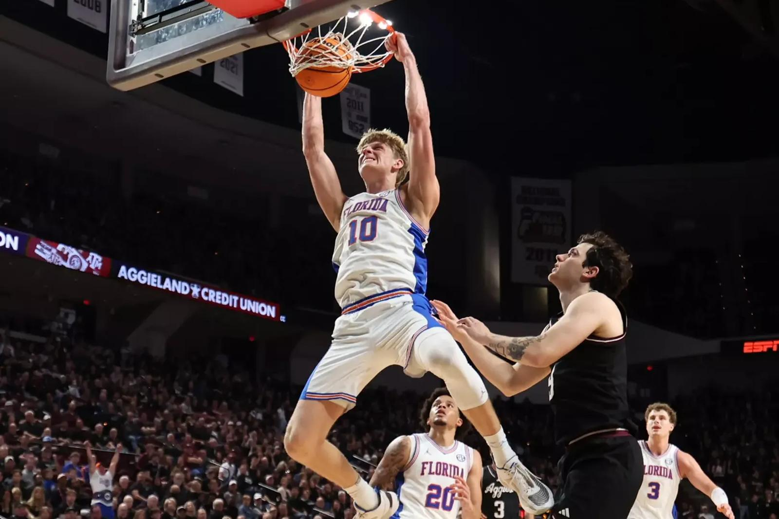 FLORIDA- Gators had a mid-week bye and that seemed to give them even more energy for their road test at Texas A&M. It turned out to be not much of a test at all as Florida completely manhandled the Aggies early and often. It was a fun day for Thomas Haugh, who had 22 points and a pair of blocked shots. The Gators moved up to a projected 3-seed, and they took over the SEC regular-season race as a result.