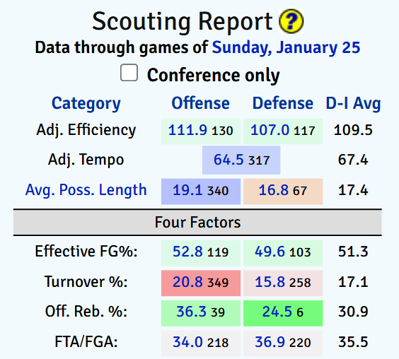 RHODE ISLAND - Jahmere Tripp said it best, "We've just continued to stay connected." In the face of a hot-seat scenario for HC Arch Miller, the URI Rams are banding together and playing much better. Last week may have been the most promising week of Miller's time in Kingston. A 74-65 win over a previously 18-1 GMU team sent loud signals across the A-10. Tripp's 23 points on 15 shot attempts and Tyler Cochran's 20 points with no turnovers were an inspiration. Well-traveled Keeyan Itejere had four blocks and is helping URI lead the A-10 in Block shot% rate, despite having an overall small team, per the "Average Height" metric. A lot of the confidence stemmed from a grinder road win at Richmond earlier in the week, 68-67. In that contest, Tripp came off the bench to score 10, then was a starter vs. GMU.
