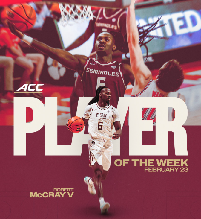 McCray V led FSU north for a road trip to face the tournament-bound Clemson Tigers. McCray V had quite a day, matching his season-high with 29 points, including Florida State’s final 10 of the ballgame, and the streaking Seminoles defeated Clemson 70-65 on Saturday.