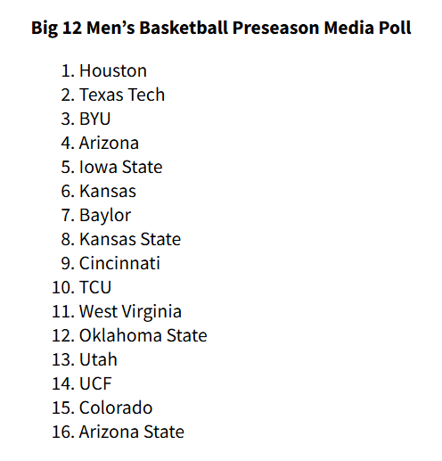 BIG 12 EXTRA: BYU - The Cougars became yet another Big 12 program to have a clean and successful week. BYU conquered the ESPN Disney Event with solid wins over Miami and Dayton. Cougars continue to hold serve where needed. Dayton and BYU had large turn outs of support which made for a great championship game. Richie Saunders' six triples ultimately overwhelmed the Flyers in a 83-79 tight one.