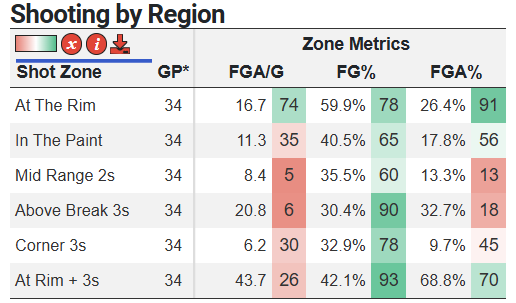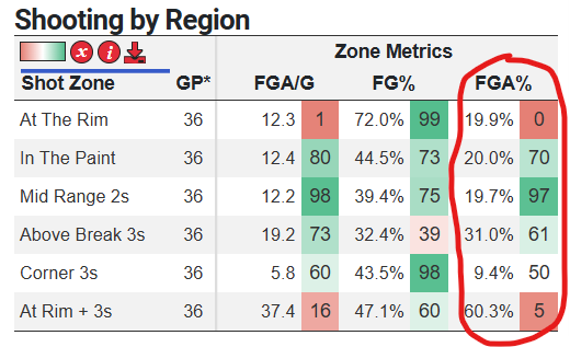 Meanwhile, Illinois takes away the rim and forces midrange jumpers at an extremely high rate:
