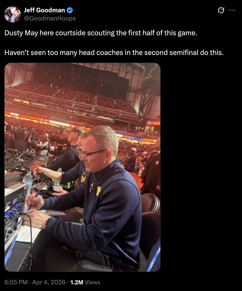 Still, it would be a stunner. Dusty's deft touch with this team, seemingly nailing every matchup and every lineup, is one of the best coaching jobs in modern memory. Yes, this team has money; yes, it is old in a way we usually don't see in college basketball. I can't and won't complain about it, though. There's a real chance that May is the ideal coach for college basketball in 2026: an analytically-minded, extremely savvy coach who is more than happy to play the portal game and invest in scouting, both analytical and visual.