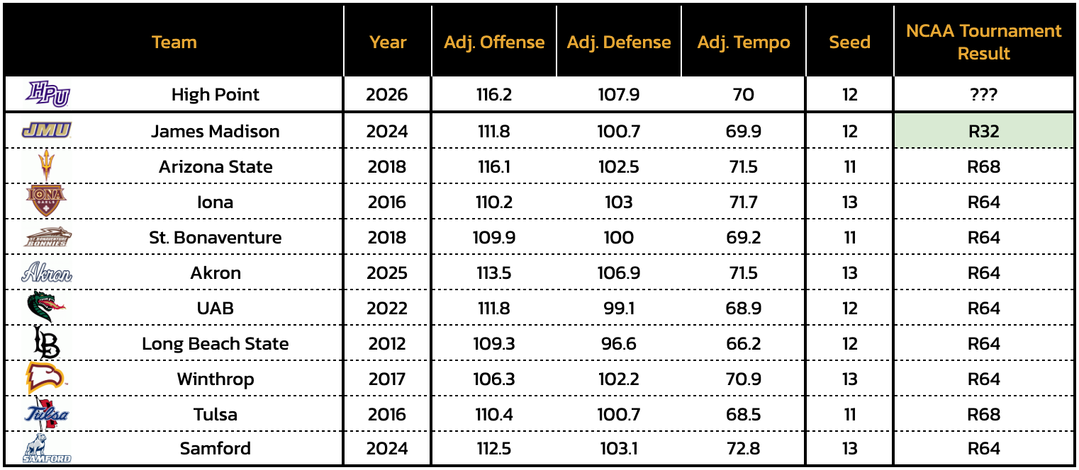 Similar NCAA Tournament efficiency profiles to High Point's: