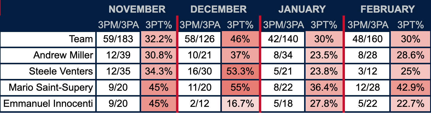 Saint-Supery was streaky as one of the youngest players in ACB, and his freshman season has not been all too different. It’s been a season of the staff waiting for the 19-year-old to take control of the role and make it a tough ask to pull him off the floor. But instead, each opening of the game has almost felt like an audition for him and backup redshirt junior Braeden Smith to see who would close out the game and play closer to 30 minutes.