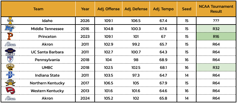 If that comes to fruition, the Tournament Index grades the Vandals are the 11th-weakest No. 15 seed (38th in power rating out of 49 teams) compared to the last 12 NCAA Tournament fields. Should they end up a seed lower, the TI views them as the 13th-strongest No. 16 seed over the same time frame. The TI projects an average of 0.10 wins given its projected seed (No. 15) and strength.