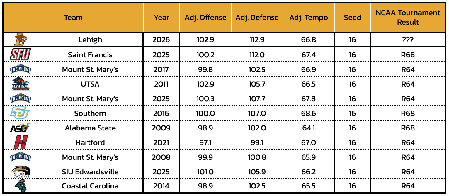 In a likely play-in contest against a fellow 16-seed, a matchup with a team with an inferior shot profile that cannot full expose them on the glass is how Lehigh plays its way into the main bracket.
