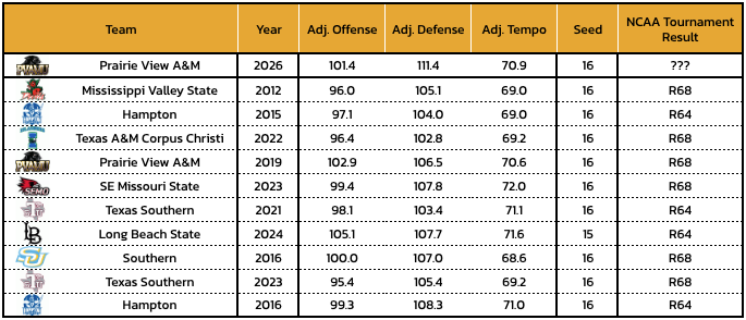 Prairie View A&M earned a No. 16 seed at the NCAA Tournament. In terms of seed strength, the Tournament Index grades the Quakers as the second-weakest No. 16 seed compared to the last 12 tournament fields. For Prairie View A&M, the TI projects an average of 0.04 wins (if it gets out of Dayton) given its seed and team strength.