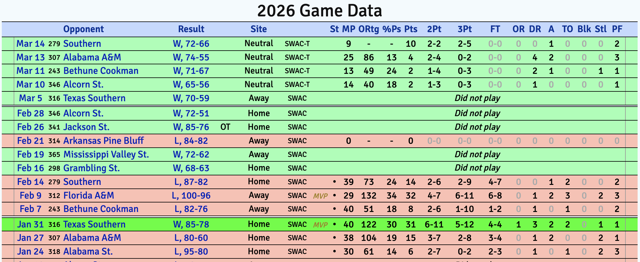 From 2022 through 2025, this program was stuck in reverse. A combination of an eroding talent supply, failed JUCO recruits, and numerous injuries turned the Panthers back into a pumpkin. The difference this year is roster construction. Smith found diamonds in the rough from the power conference rank, and rounded up one of the most experienced rosters in the SWAC, which boasts eight graduate students and features ZERO underclassmen in the primary rotation.