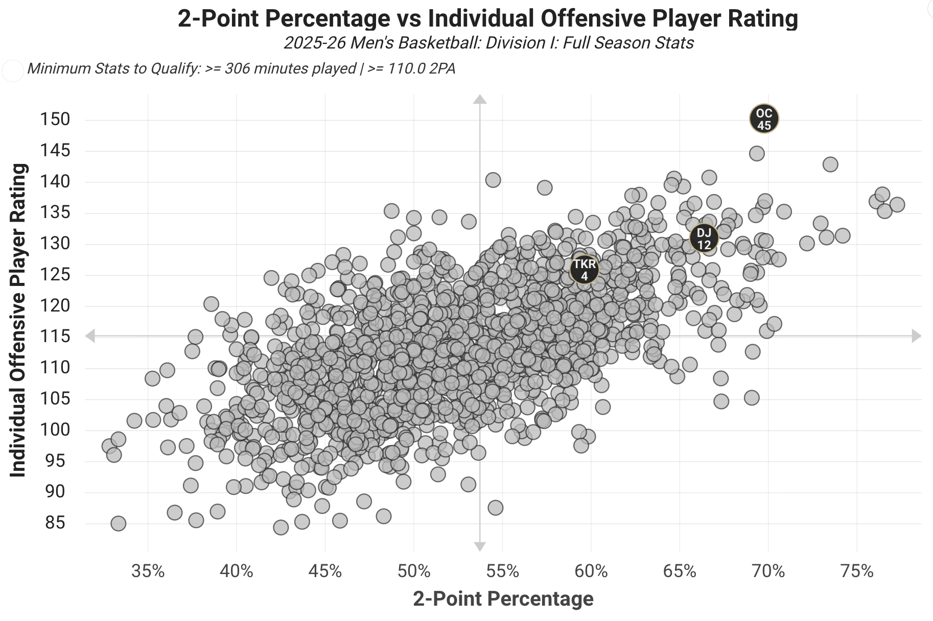 Trey Kaufman-Renn has taken a step back in raw stats this season, but has done his best to fit into a new dynamic with more weapons and less dependency on him to carry the offense. He’s averaging 13.6 points and 8.4 rebounds per game. 10.4 of those points come in the paint, putting him in the 98th percentile of interior scorers in the country.