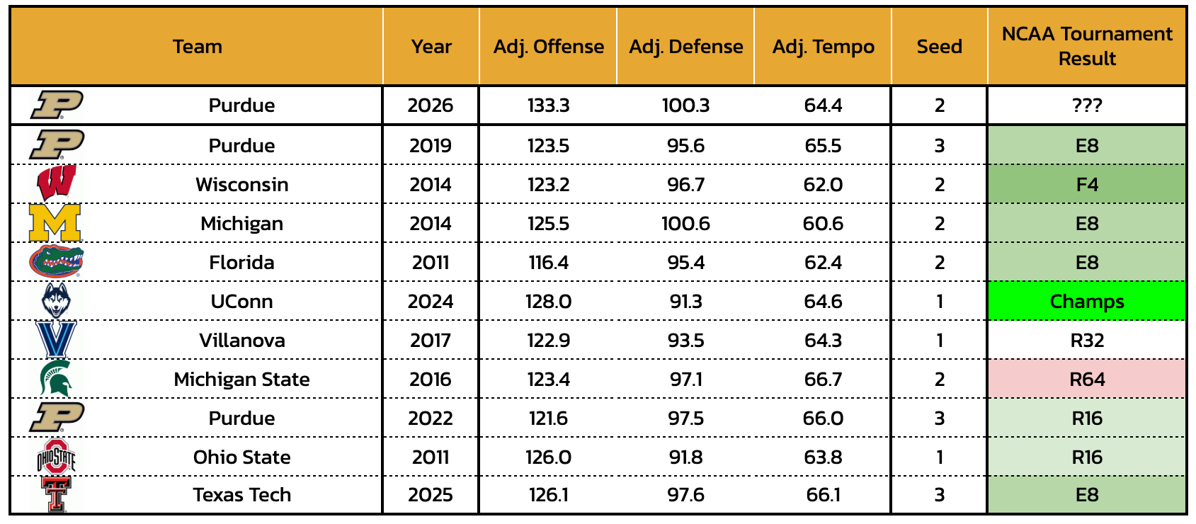 Similar NCAA Tournament efficiency profiles