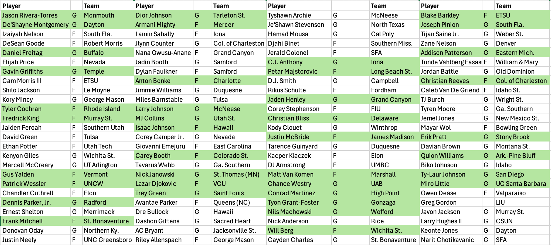 I was wrong on a bunch of these guys. MJ Collins got a C for being "so bad in three years of college I almost wonder if he should have dropped to true MM level for his senior season." Armani Mighty got a C+ for being "perhaps the worst player in HM hoops in his two years at Boston College." Only Conrad Martinez and Dennis Parker got above a "B+" on this list. It was a significant blind spot in my rankings, with the lack of proven or efficient production at a higher level forcing me to second-guess their additions.
