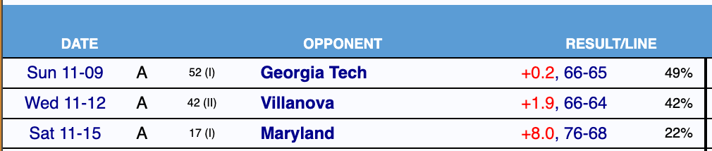 #277 Southern Indiana at #72 Butler (-17), 7 PM ET, ESPN+. Two reasons: 1) I'm going to Butler's game Saturday after the Monumental Marathon in Indy. 2) Southern Indiana is 8-4 ATS in their short Division I history as a 10+ point underdog, including a near-win at DePaul last year on opening night. Then again, this USI roster looks pretty rough on face value.