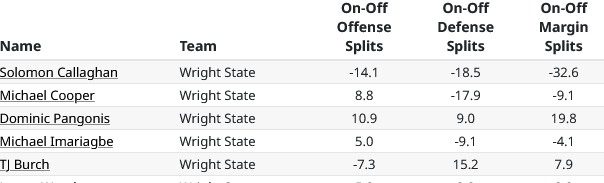 Worth noting Oakland scored at a season low efficiency at the rim (.8 PPP) on 11/27 shooting. I wasn't a particular believer in Wright State's rim defense through OOC play, but they've been the second best 2PT% defense in the Horizon to date. I'm reluctant to think Kampe gets swept, and if Cooper remains out, it's an offense for defense trade - but the Raiders have clearly "figured out" the zone. - Jordan Majewski