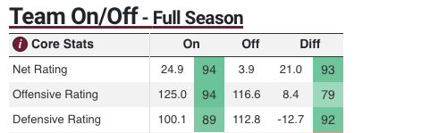 Put more simply: that group consistently gets shots up on the rim, and they chase down misses with a terrifying zeal.