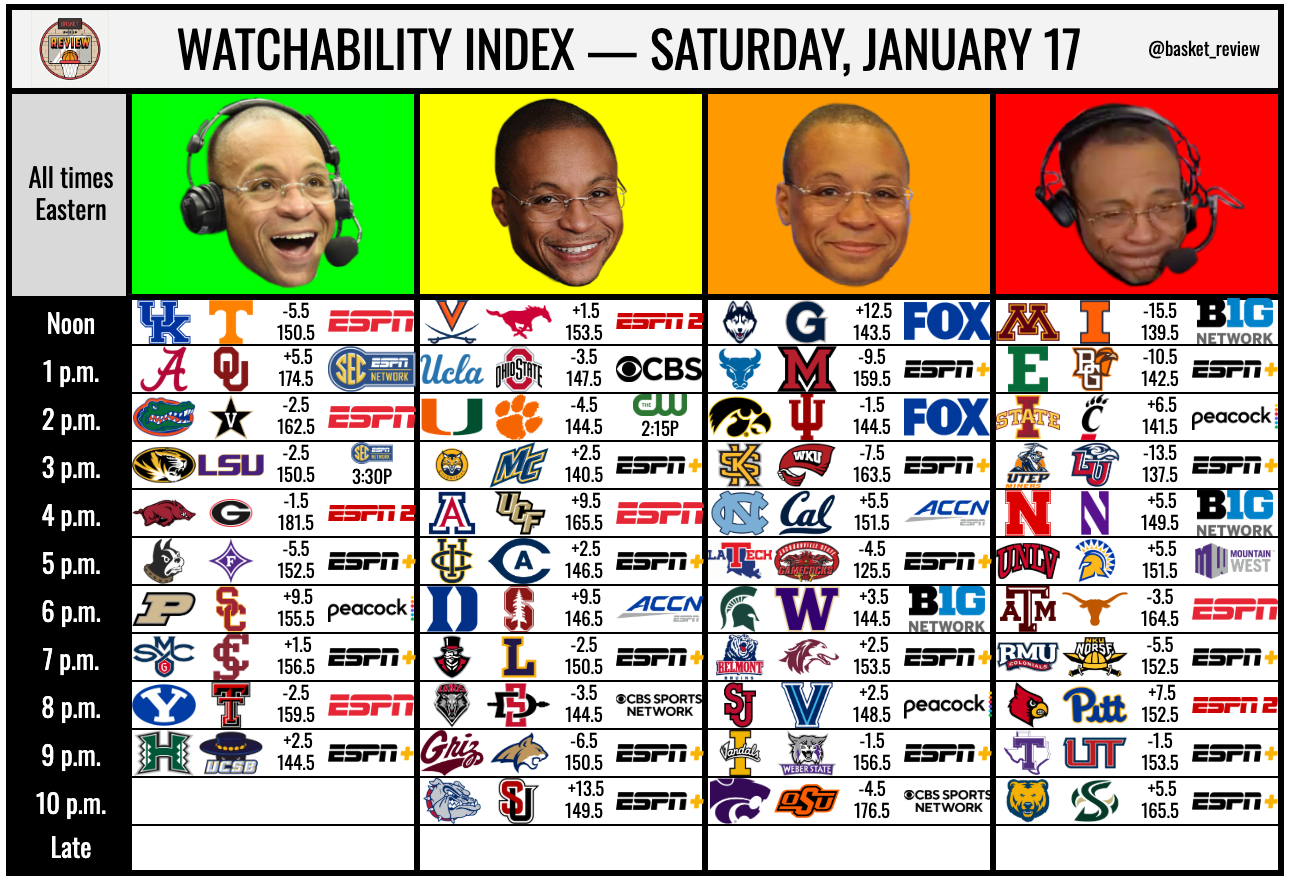 Kentucky's comeback means they are BACK and that the SEASON IS SAVED, or perhaps this is what you would write if your computer background was Anthony Davis for the 15th consecutive season on media row. Meanwhile, Tennessee got sent to the shadow realm by Florida on Saturday and had to survive an ugly shooting day midweek to escape a frisky-if-not-great Texas A&M team. If you're purely a vibes reader, you will be highly tempted by Kentucky.