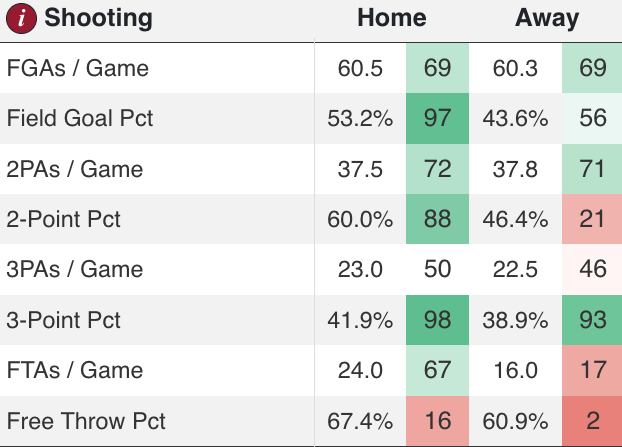 In comes Tennessee, the No. 1 offensive rebounding team in the country, fresh off two games with a combined 40 offensive rebounds, grabbing over 50% of their misses over that span. That said, the Volunteers are not capitalizing on the boards. They are shooting a very pedestrian 60% on offensive rebounding putbacks in SEC play, and team leader in rebounding rate Jaylen Carey is a horrific 42.4% at the rim in league games.
