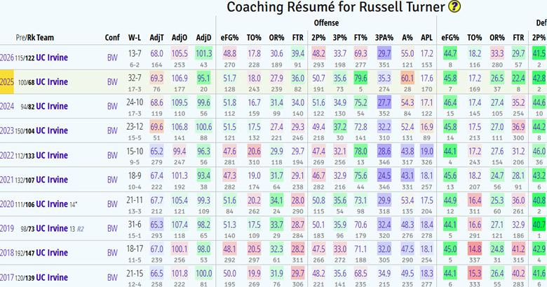 Irvine’s offense has been a problem, as Derin Saran has struggled to knock down jumpers after boomeranging back from Stanford, and rookie guards Tama Isaac and Jovan Jester are somewhat limited offensively. Irvine’s 351st-ranked 3PA rate and 189th-ranked O-Reb rate do not bode well against UCSD’s zone, and the Anteaters unsurprisingly score in the 19th percentile against zone looks this year, per Synergy.