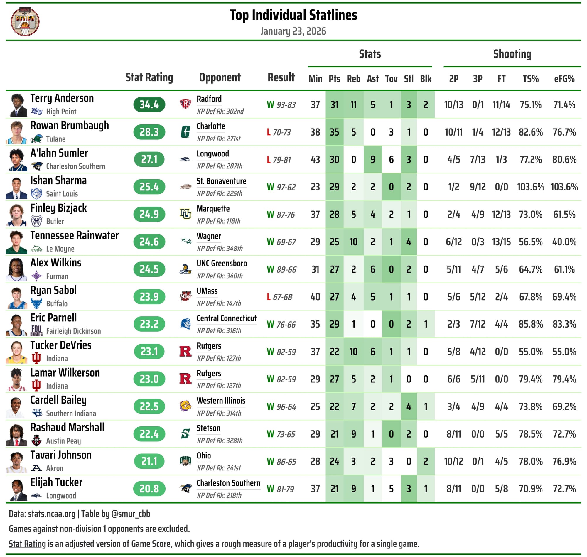 I elevated this one from the C-tier because it's important to the MVC race for one, but also because it's a very good game. No team has a wider Math Gap than Murray State enforces on a nightly basis, as the Racers lead America in total net points from 3 (+309). Do you know which team outshot them from three this year? It's exactly one, and it is...Valparaiso. That's how unusual it would be if it happens here.