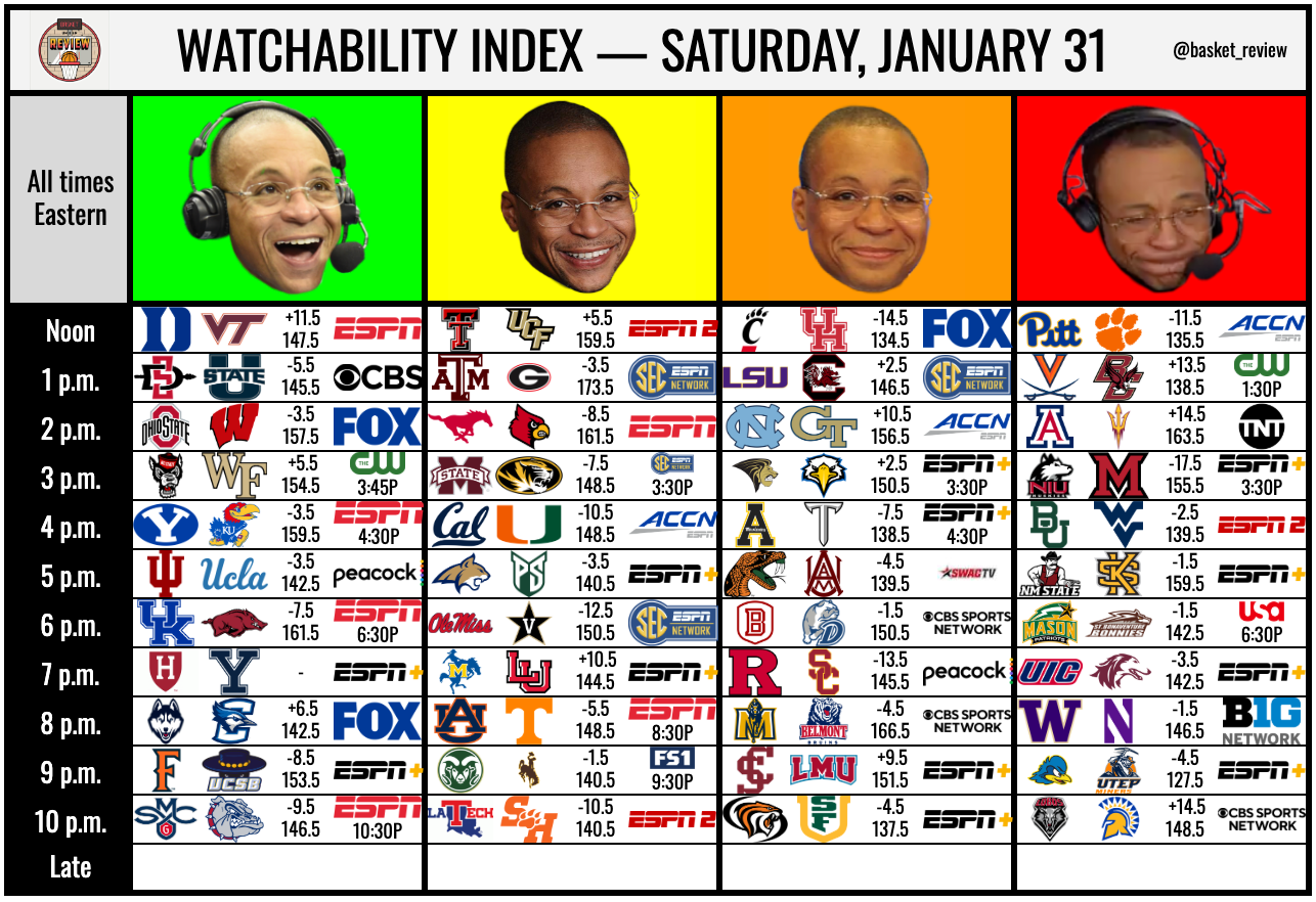 Welcome to another edition of the Weekend Watchlist! Before you dive in, check out yesterday's top performances and today's Watchability Index.
