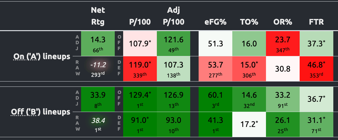 Maryland can and will pounce on that if asked. Their record against quality competition isn't great, but they're a top-3 offensive rebounding team in the nation who will get to play a Michigan State team that's roughly average rebounding-wise and is 16th in the league in opponent 2PT% in conference play. This Maryland team is also fantastic in first halves, nearly nine points better per 100 possessions. If MSU's not ready to play from tip, it'll be a second straight game where they dig themselves a hole they've got to play out of.