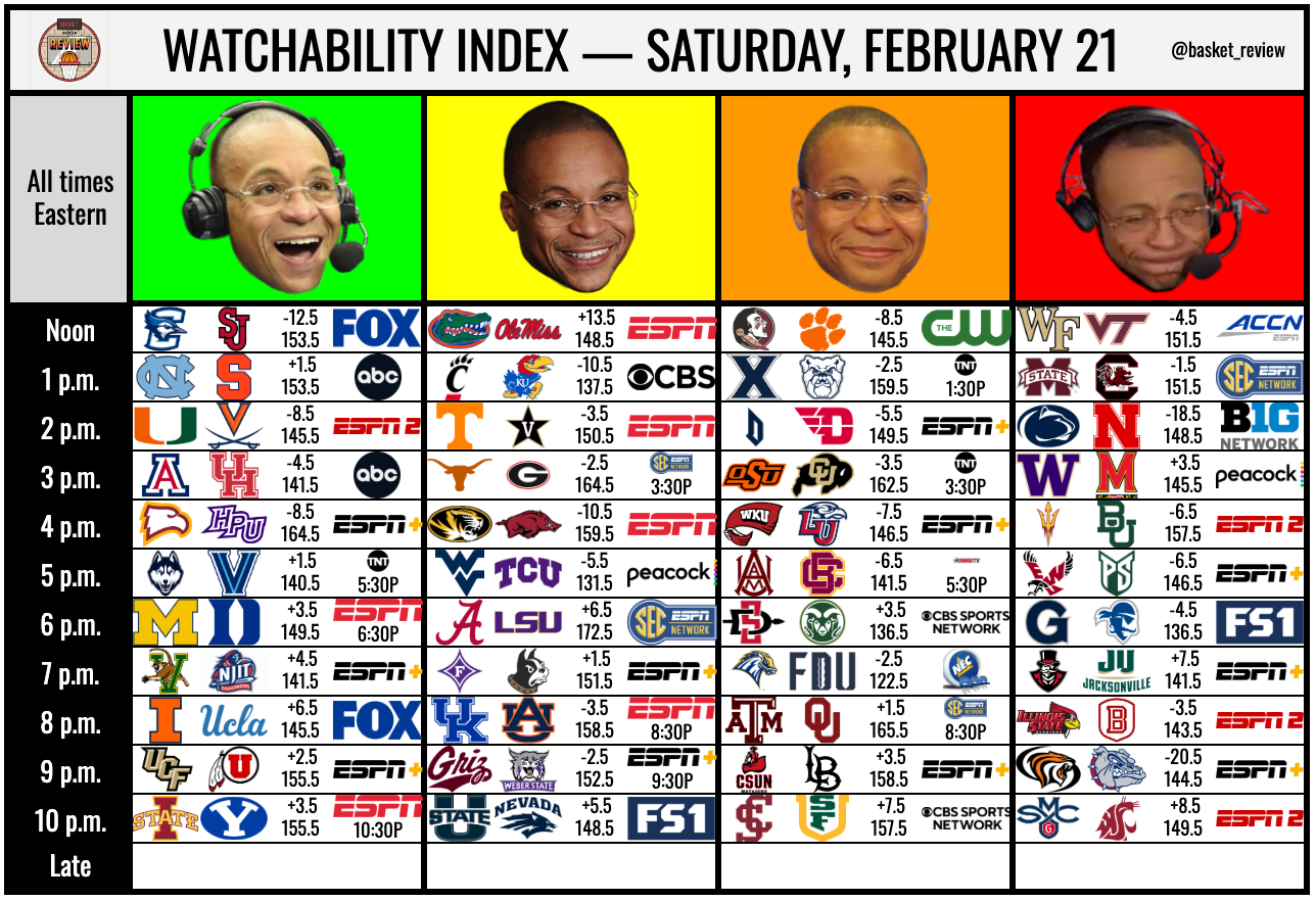That, plus the way Vandy covers ball screens (generally preferring to sit back and not pursue over the top, which would open things up for a lot of Ja’Kobi Gillespie threes), tempts me to pick Tennessee in a spot that’s pretty obviously favoring Vandy. Tennessee’s non-home performances have been super up-and-down, and while this is the same team that’s beaten Houston and Alabama away from home it’s also the same one that lost at Syracuse for reasons unknown. I also think Tyler Tanner could simply have an advantage over literally anyone guarding him in this game. To be honest I’m giving this one a grade of Incomplete - I can’t really figure out which way I lean until the status of Miles is confirmed. - Will Warren