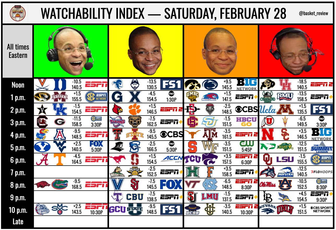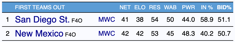 That makes SDSU/New Mexico the Official Basket Under Review Bubble Game of the Year for 2025-26. At Torvik’s site, using a combo of two-way leverage (i.e., both teams need to have something at stake and be on/near the bubble) and the Torvik Tourney Thrill Quotient (FanMatch, but boosted for Tournament implications), this is only surpassed by Texas/Mizzou on Valentine’s Day and Cincinnati/TCU next Saturday. Me personally, I’d rather get whacked with hammers than watch Cincinnati play TCU, and I’m simply going to take this game over both, because it’s on CBS and game production matters.