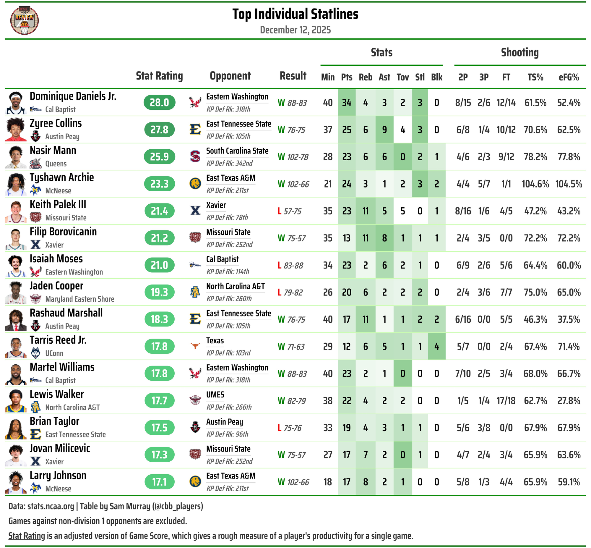 I'm not sure this is anywhere close to a likely one, but intriguing two-way shooting variance is owed here. Wazzu's opponents have ripped off a 39% hit rate from 3 (nearly 5% over expectation), while USC's +9.6% 3PT% gap is one of the more extreme 3PT% gaps in the sport at the moment. USC's also oddly bad at defensive rebounding, and rebounding is one of the few things that's gone well for the Cougars so far. I'm not saying! I'm just saying it might be somewhat close. Maybe. - Will Warren