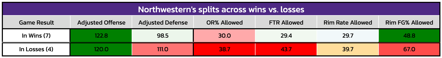 Northwestern has lost to its four fastest offenses faced, but perhaps tempo had less to do with that than those opponents simply being their best teams faced. Still, Northwestern’s drop-off in losses has been more noticeable on defense than offense: