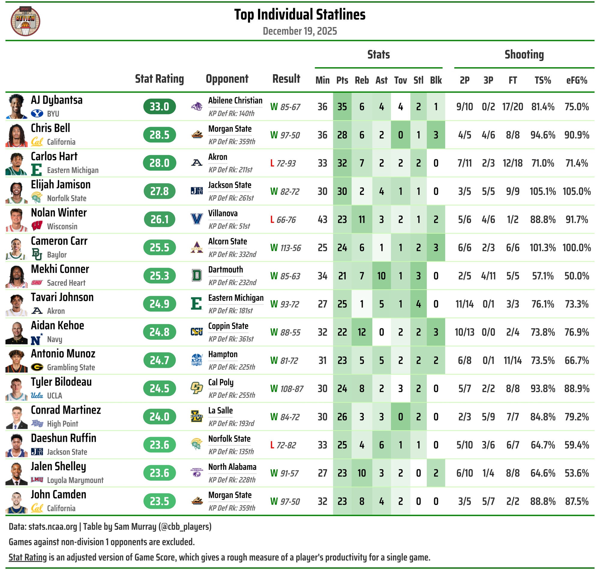 Eventually, we'll collectively come to the conclusion that this Purdue team is simply very good. How good are they? Title contenders? I mean, sure. They have the best offense in America, the defense isn't quite as bad as I feared it might be (though it still needs work), and despite a top-40 schedule strength right now, they've outrebounded opponents by +14.1 per 100 possessions. They also never, ever foul.