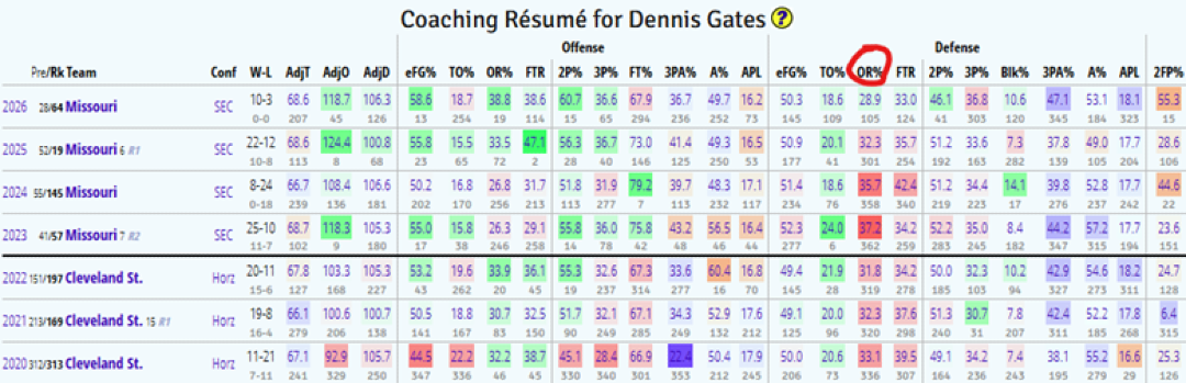 Color me concerned about my alma mater, which has consistently gotten smashed on the defensive glass during Dennis Gates’ tenure. In fact, Gates’ scheme – a mish-mash of pressure-y man and zone looks that rarely actually settles into a cohesive unit – is always awful in that area: