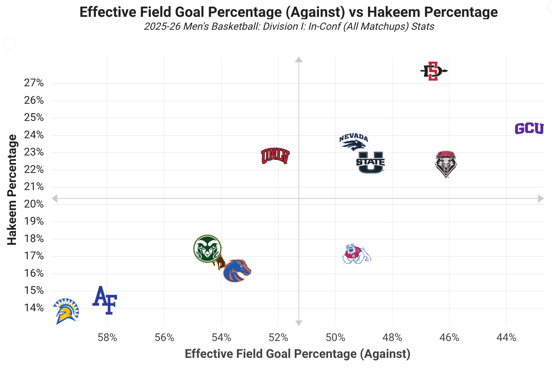 Despite Grand Canyon’s inconsistencies, they’re so dangerous because this is Drew’s best defensive squad over his 6 years in Phoenix. The Antelopes lead the MWC in opponent effective field goal percentage and their Hakeem percentage (block and steal rate) is second only to San Diego State.