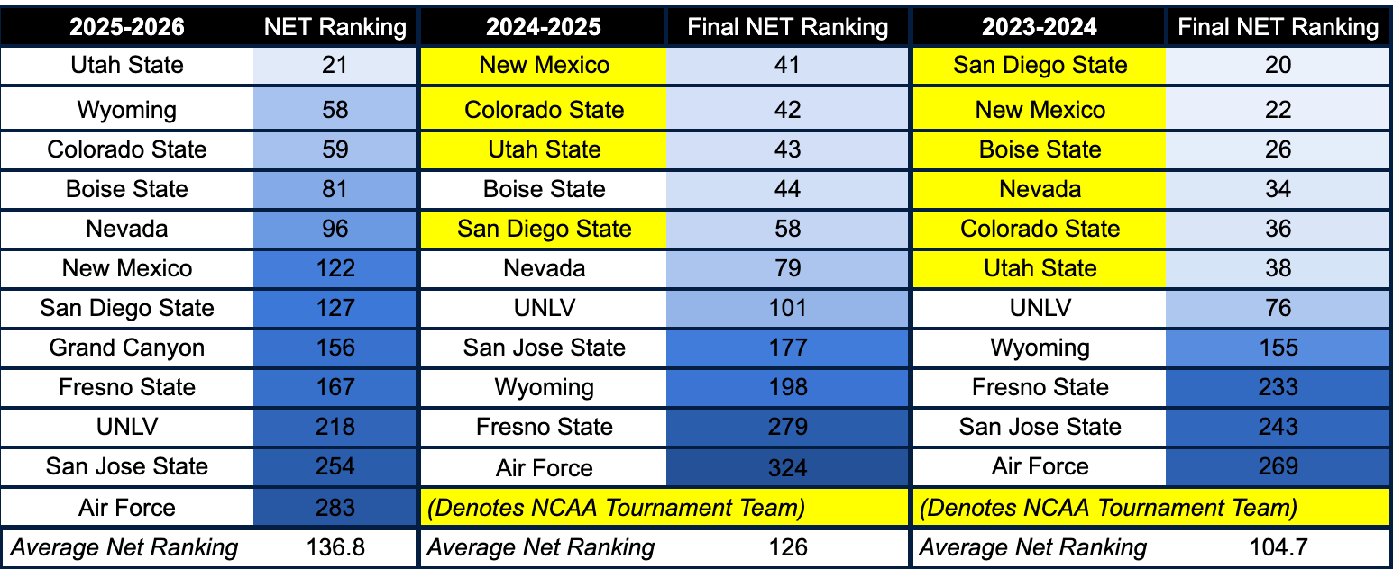 NET rankings set expectations for a struggling Mountain West Conference